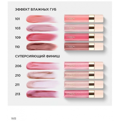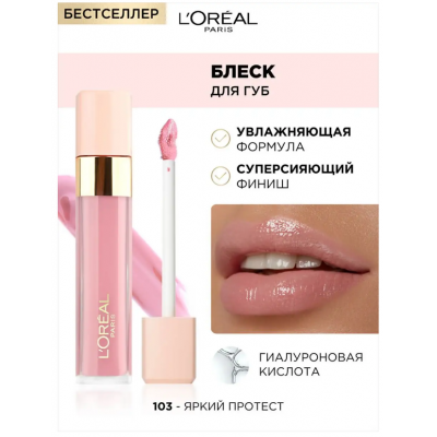 Shine in all your glory! L'Oreal Paris presents the famous Infaillible lip gloss in an updated bottle. The gloss formula contains the caring properties of lip balm. An incredible combination of lip gloss in a gold design and balm formula. MORE ABOUT THE INGREDIENTS: Hyaluronic acid actively saturates lips with moisture. Antioxidants in the composition protect against the negative effects of the environment, preventing early skin aging, and vitamin E nourishes and cares for the delicate skin of the lips. Moisturized lips and shiny gloss! The lip gloss has a double-sided modeling applicator, each side of which is designed to apply gloss to one of the lips. The concave side of the applicator is for the lower lip, the curved side is for the upper lip.