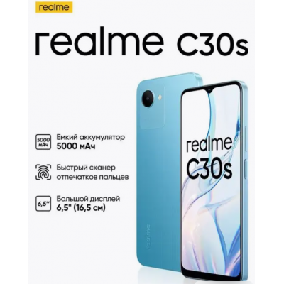 realme C30S is a reliable smartphone with balanced characteristics and stylish appearance. For a low price, you get a device with a capacious 5000 mAh battery, allowing you to always stay connected even if there is no way to recharge your phone. And with the super energy saving mode turned on, even with a 5% smartphone charge, you can communicate in messengers for more than 1.5 hours. The extraordinary design of the smartphone will allow you to stand out among others, and a thin body of only 8.5 mm, a weight of 186 g and a fast side fingerprint scanner will ensure maximum comfort in use. realme C30S has excellent content creation and consumption capabilities. The 8 MP AI camera allows you to take stunning photos, and the large 6.5" display with 88.5% usable area and stereo sound with Dirac 3.0 technology ensure complete immersion in the content you are viewing.
