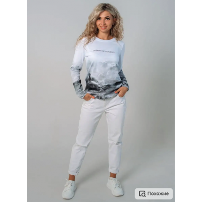 **Fitted long sleeve, made of soft, smooth fabric. When choosing, be guided by Russian sizes, but if you prefer a looser fit, order a size larger or even two.** The ideal long sleeve women's long sleeve with a print and long sleeves made of soft cotton fabric that is pleasant to the body. The long sleeve is not see-through and fits the silhouette beautifully. A clear model that can be easily combined with any items from your wardrobe - a long sleeve with sleeves will suit both a business style and a relaxed sports set, fit into a casual look or easily complement a romantic look. Our long sleeve T-shirt is one of the most popular clothing models all year round. Suitable for home wear, going to the office, going to the gym, walking and traveling. The long sleeve is suitable for both tall and short girls. It will become your favorite when choosing an image for every day. Wash with items of similar color and remove immediately after washing. Iron from the wrong side.